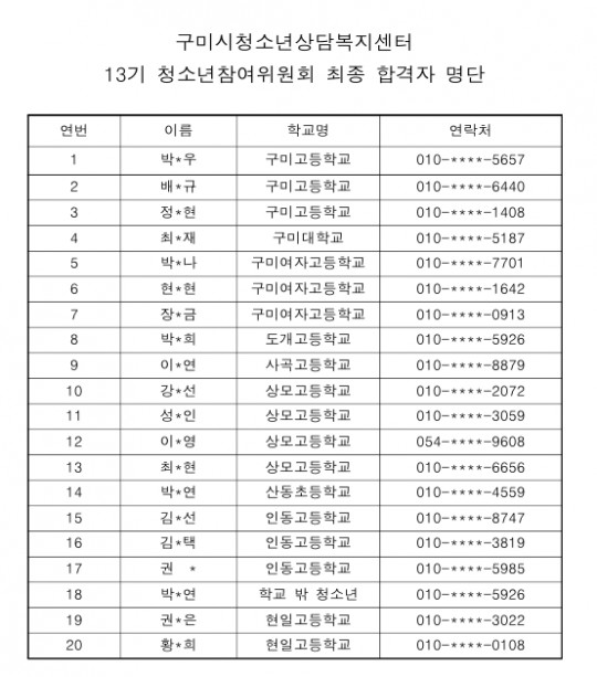 Á¦ 13±â ±¸¹Ì½Ãû¼Ò³âÂü¿©À§¿øÈ¸ ÃÖÁ¾ ÇÕ°ÝÀÚ ¸í´Ü