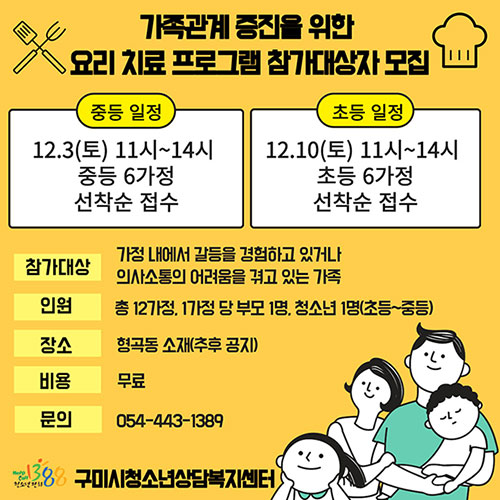 û¼Ò³â°ú ºÎ¸ð°£ÀÇ °Ç°ÇÑ »óÈ£ÀÛ¿ëÀ» ÃËÁøÇϰíÀÚ ¿ä¸®¶ó´Â ¸Åü¸¦ Ȱ¿ëÇÑ ÇÁ·Î±×·¥À» ¿î¿µÇÕ´Ï´Ù